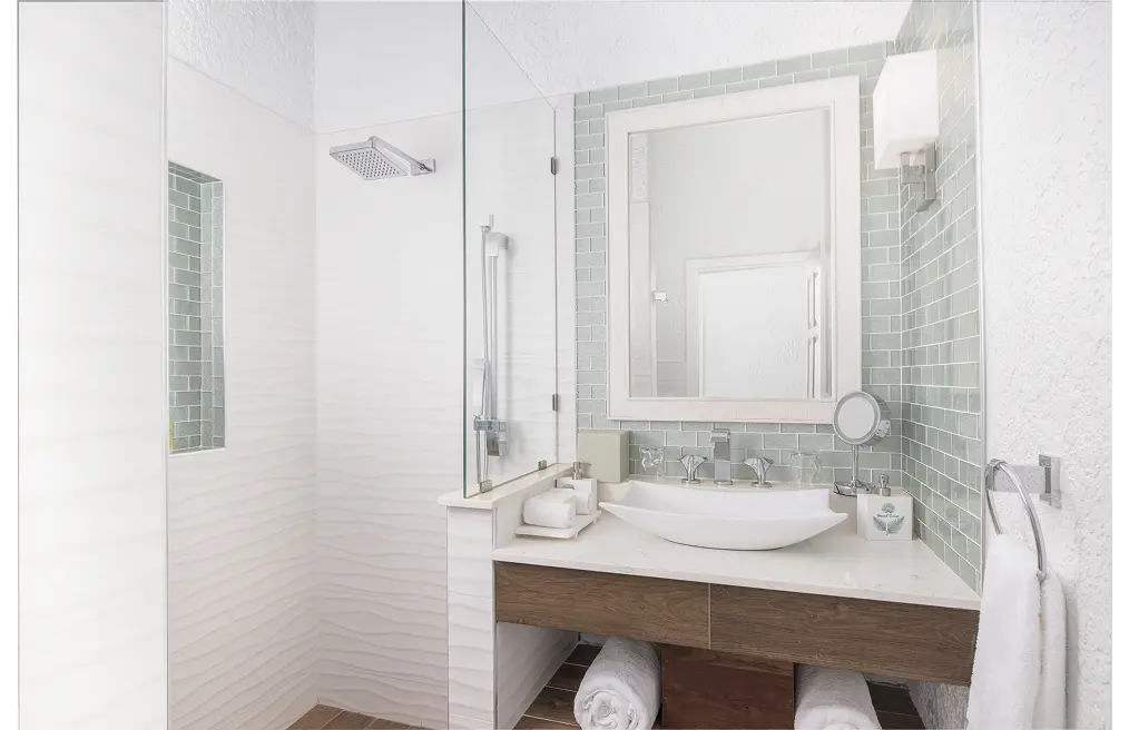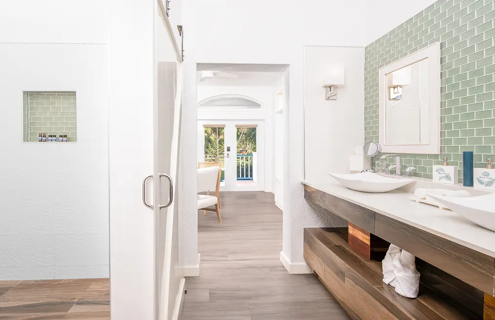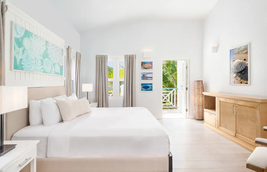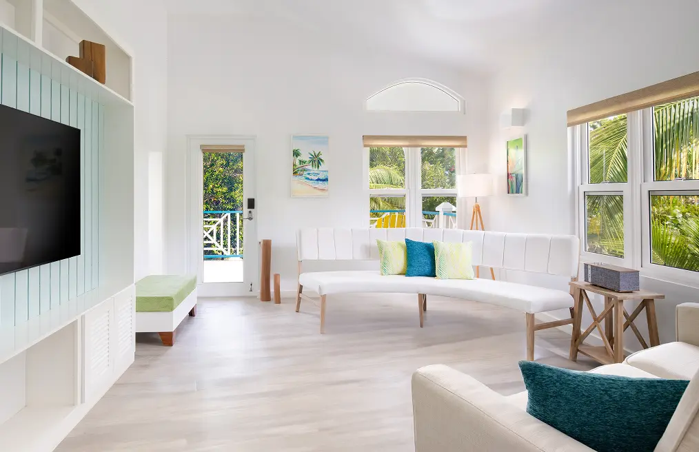 An inviting cabana-style hideaway embraced by nature. Soft natural light and tropical foliage set the tone for a calming stay. This cozy suite offers privacy and tranquility, ideal for those seeking a peaceful escape.